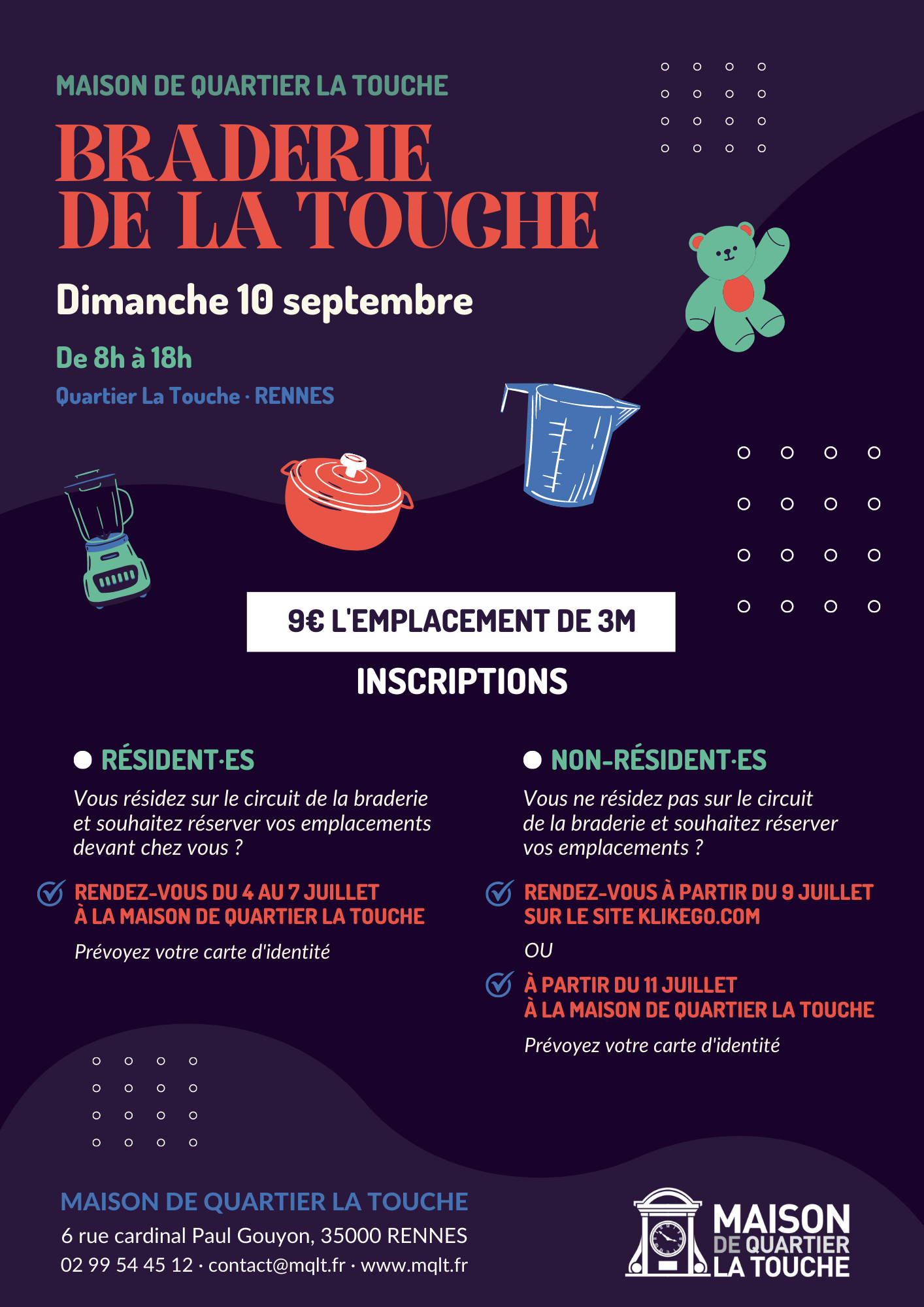 La braderie de La Touche est une grande journée de rencontres, de convivialité… et de bonnes affaires bien sûr. Environ 1000 emplacements, des stands de rafraichissement et de restauration, et une météo toujours au top !