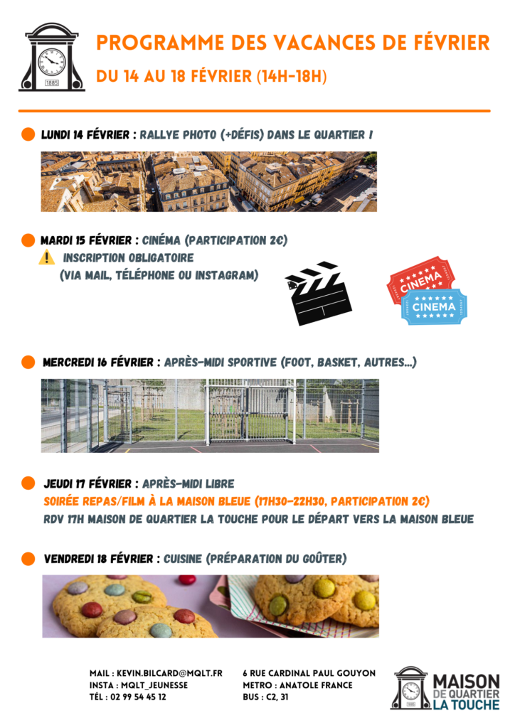 Programme jeunesse vacances de février. Du 13 au 24 février. De 14h à 18h (changements…