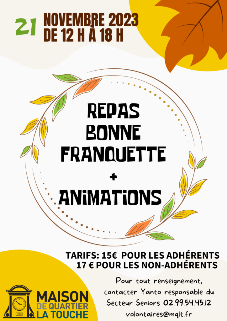 Tous Bonne Franquette Retrouvons-nous autour d'un bon repas le mardi 21 novembre, de 12h à 18h !stecy14 novembre 2023