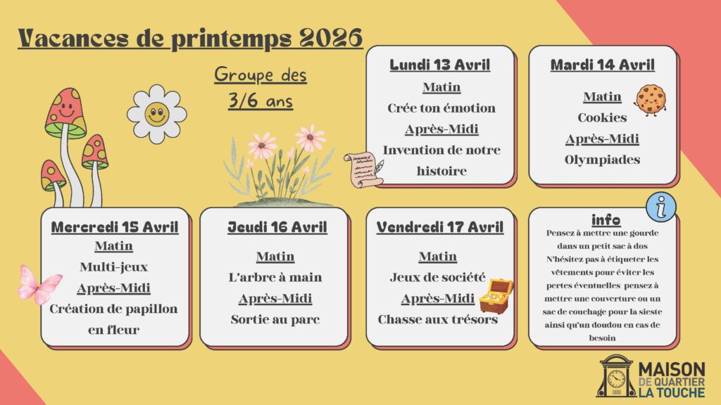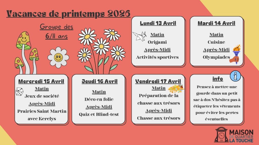 L’accueil de loisirs pour les vacances de printemps sera ouvert :