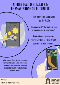 Venez réparez vous-même votre appareil, à l’aide de nos outils et de nos conseils. Les jeudis 1er et 8 décembre de 18h à 20h.