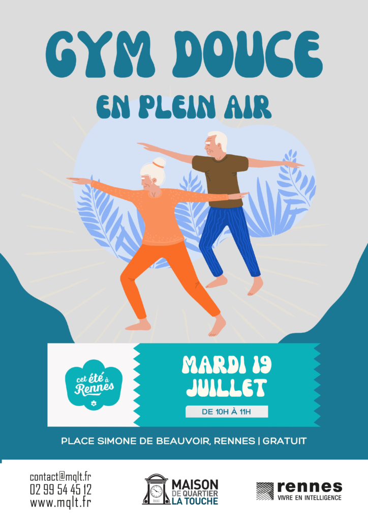 La Maison de Quartier La Touche vous propose un cours en plein air de gymnastique douce. Une occasion de tester une activité physique et sportive collective adaptée à tout âge, tout en sympathisant avec d’autres habitants. Cet événement intègre la programmation de Cet été à Rennes. Il est gratuit et ouvert à toutes et à tous