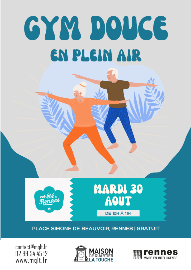 La Maison de Quartier La Touche vous propose un cours en plein air de gymnastique douce. Un occasion de tester une activité physique et sportive collective adaptée à tout âge, tout en sympathisant avec d’autres habitants. Cet événement intègre la programmation de Cet été à Rennes. Il est gratuit et ouvert à toutes et à tous