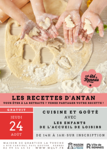 Vous êtes à la retraite et souhaitez partager une recette de goûter avec les enfants de l’accueil de loisirs, et cuisiner avec eux ? Vous êtes la bienvenue !