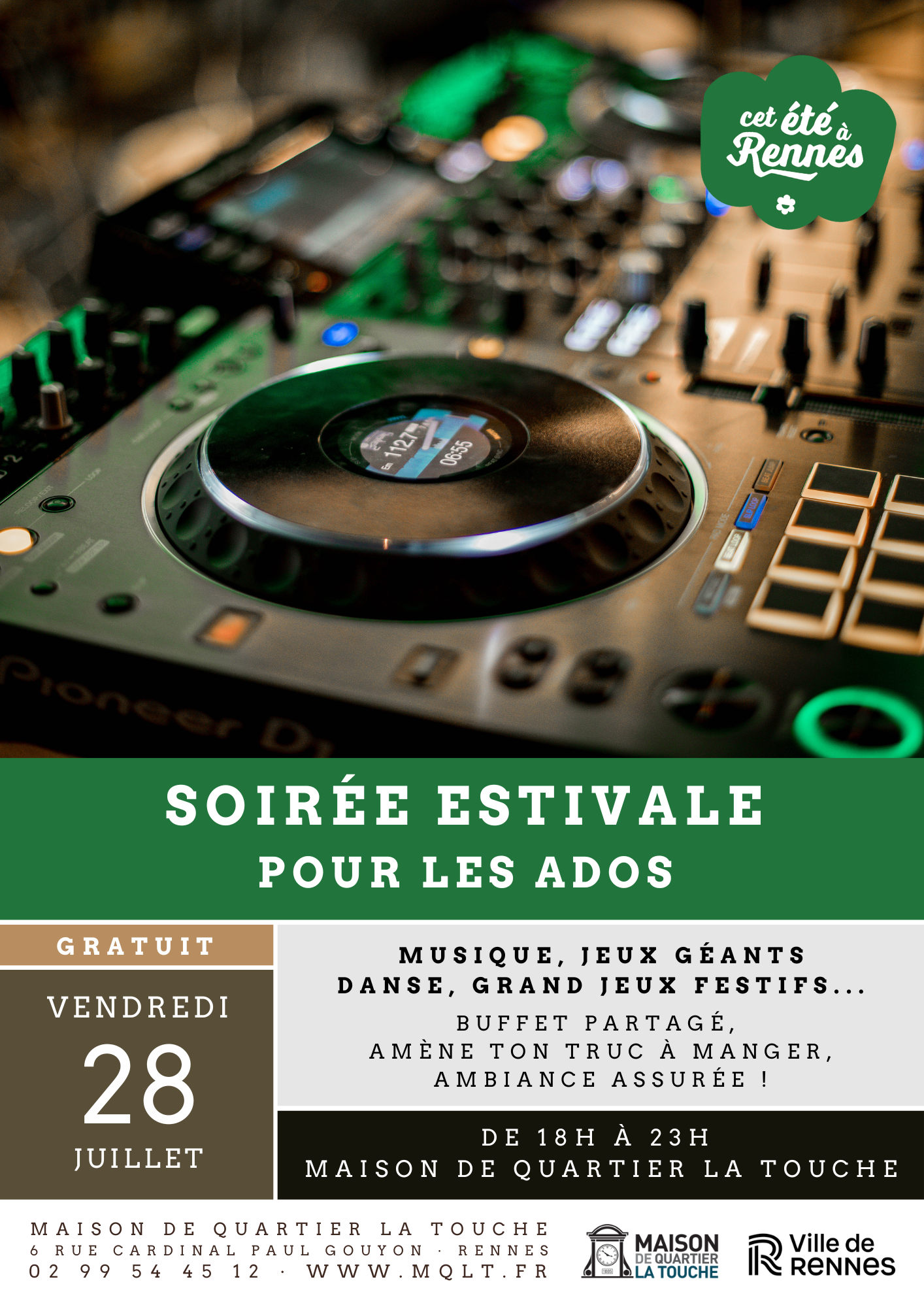Fêtons l’été sous forme d’une Boom ! Musique, danse, grand jeux festifs, jeux géants… Une soirée organisée par les jeunes, des animations au buffet ! Buffet partagé, amène ton truc à manger !
