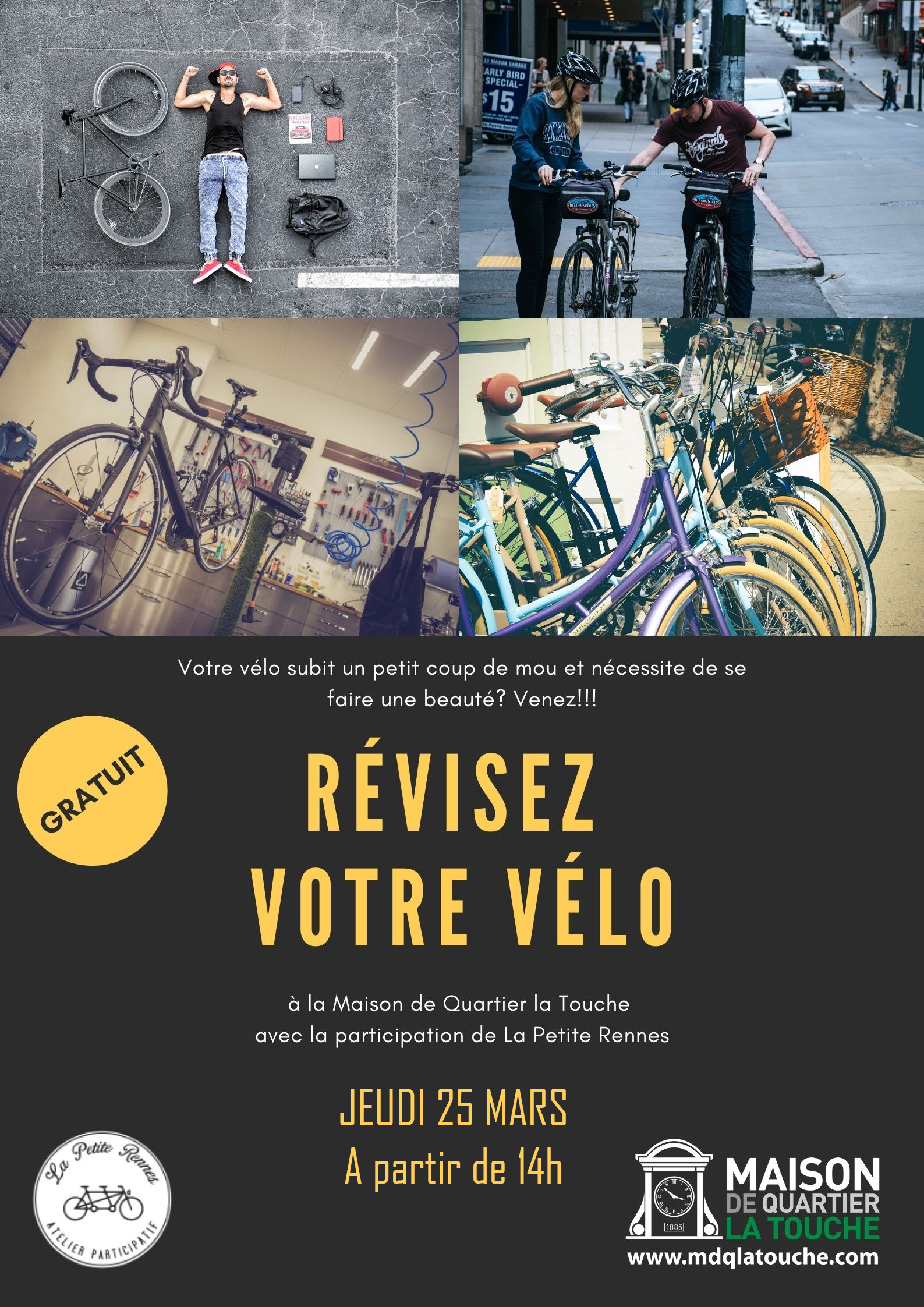 Le jeudi 25 marsA partir de 14h Votre vélo subit un petit coup de mou et nécessite de se faire une beauté ? Venez, c’est ouvert à tout le monde !