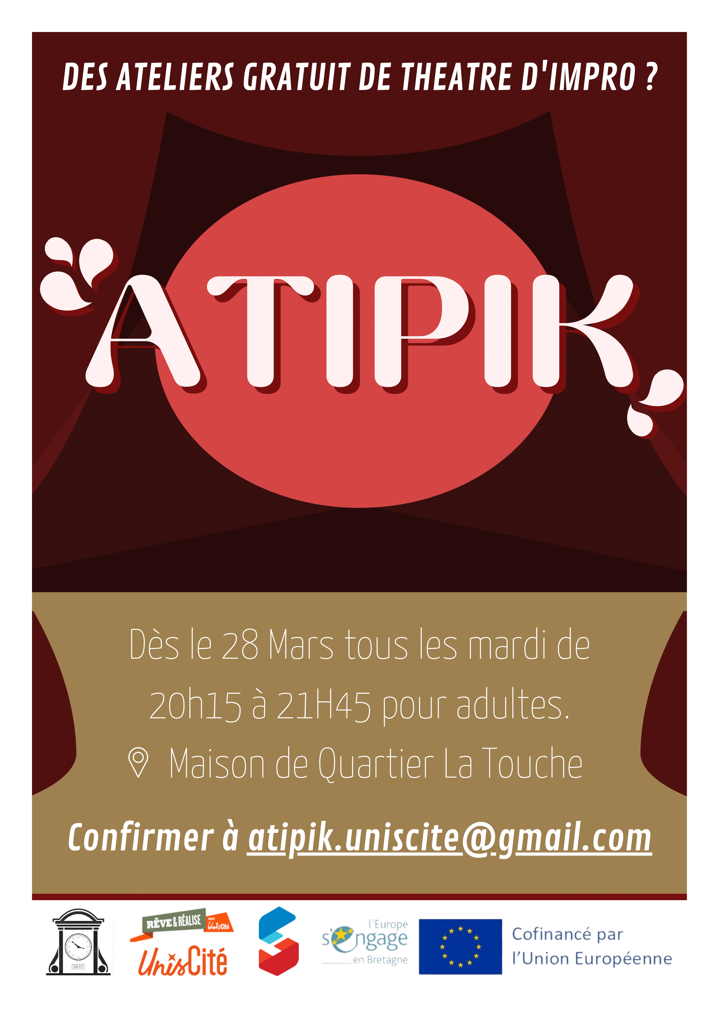 N’hésitez pas à nous contacter pour plus d’informations et/ou pour vous inscrire, à atipik.uniscite@gmail.com !