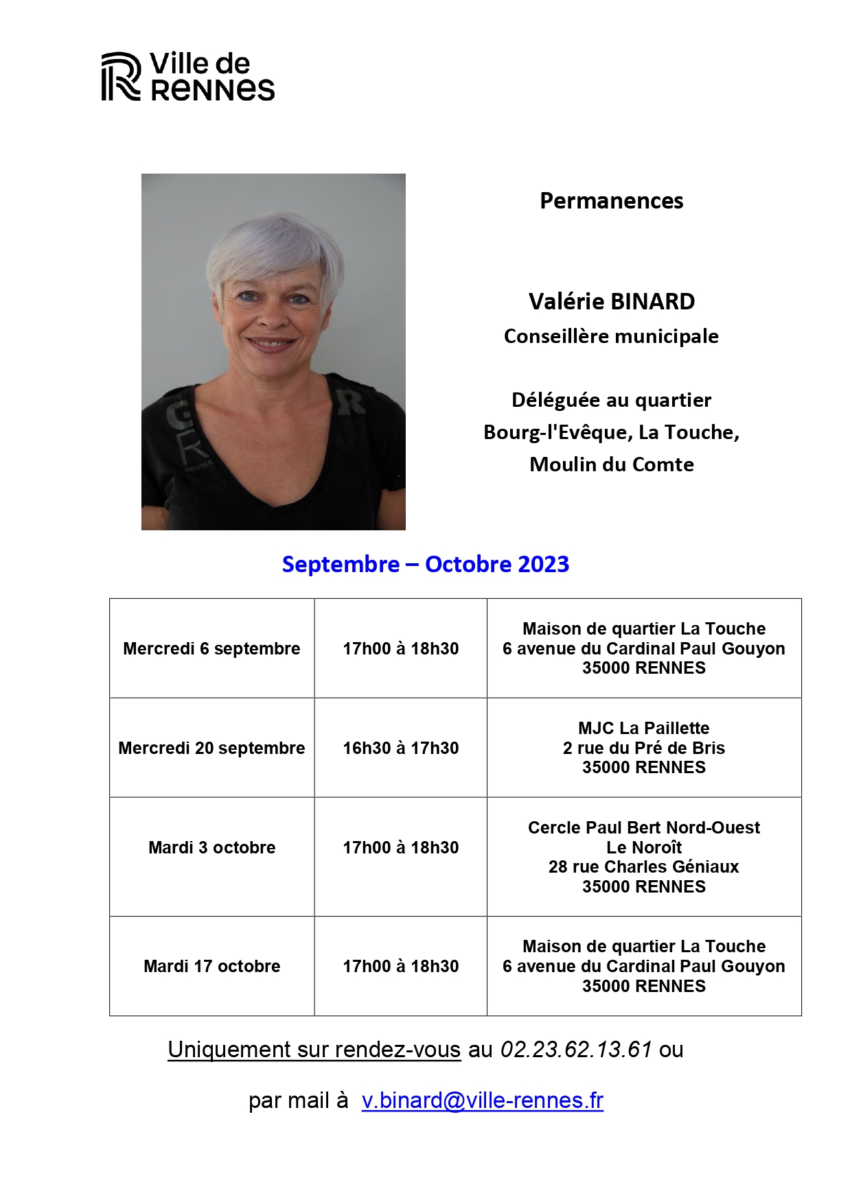 Conseillère municipale, déléguée au quartier Bourg-L’Évêque, La Touche et Moulin du Comte.