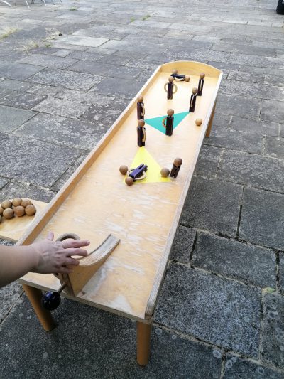 Il s’agit d’un jeu de quilles original puisque celles-ci sont remplacées par des personnages plus ludiques. Son lanceur orientable varie les plaisirs du jeu et les plus petits trouvent cela génial.