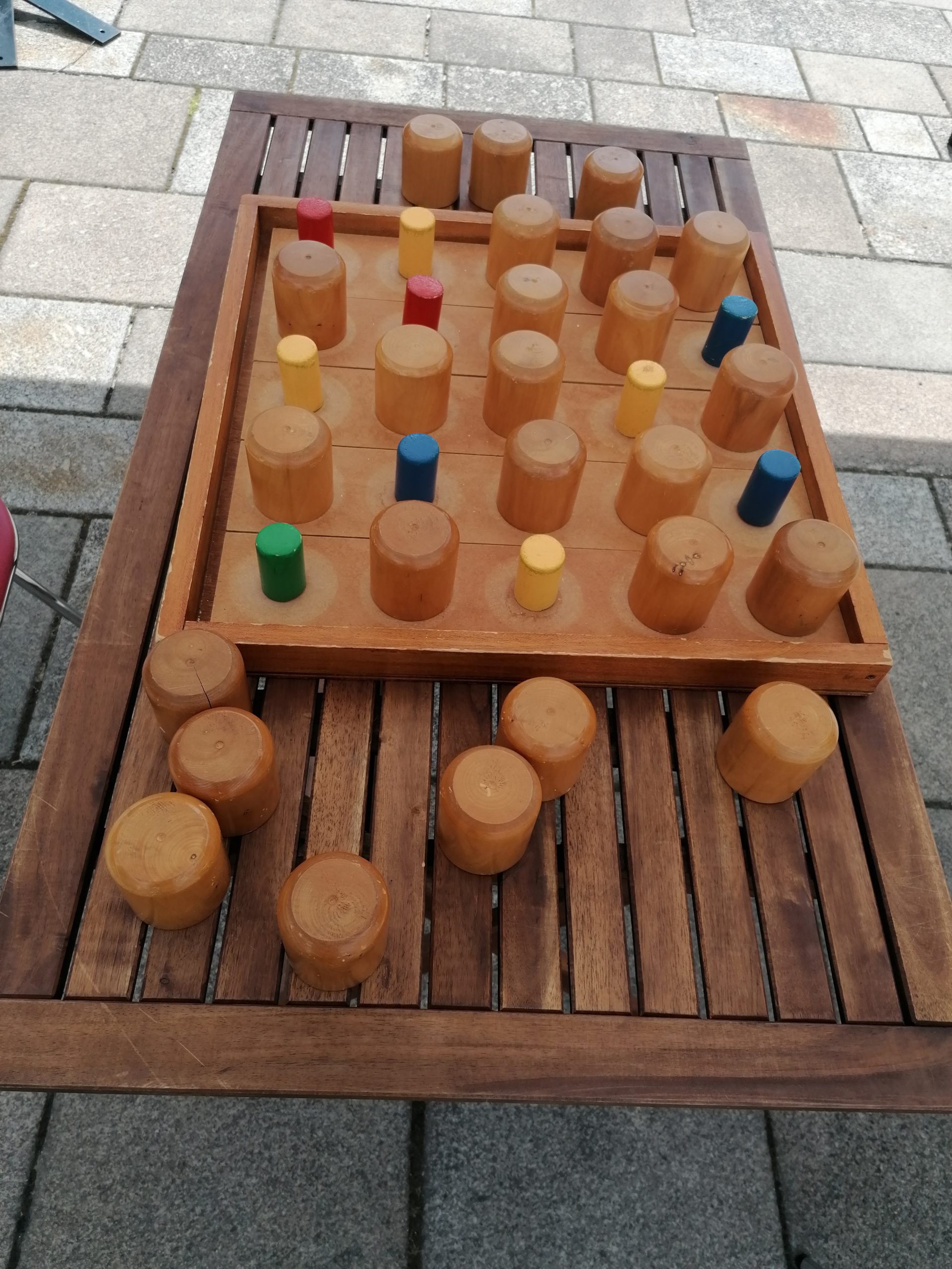 Faire découvrir par son adversaire le cinquième plot d’une même couleur. Chaque joueur découvre à son tour 3 gobelets. Soit il enlève les trois gobelets du jeu, soit il n’en sort qu’un.
