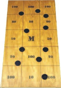 Il s’agit de lancer ses palets dans les cibles valant le plus de points, le crapaud étant la plus élevée.