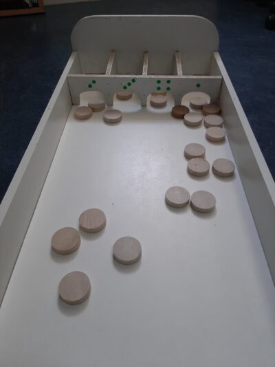 Faire le maximum de points en faisant glisser les palets un à un, dans 4 compartiments au bout du billard