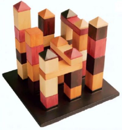 Jeu de réflexion en bois de toute beauté. Sur un plateau vide au départ, chaque joueur va placer ses blocs et ainsi ériger des tours. Pour marquer des points, il vous faudra respecter certaines contraintes et être le premier à poser un toit sur une tour.