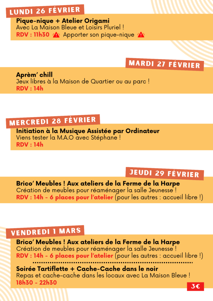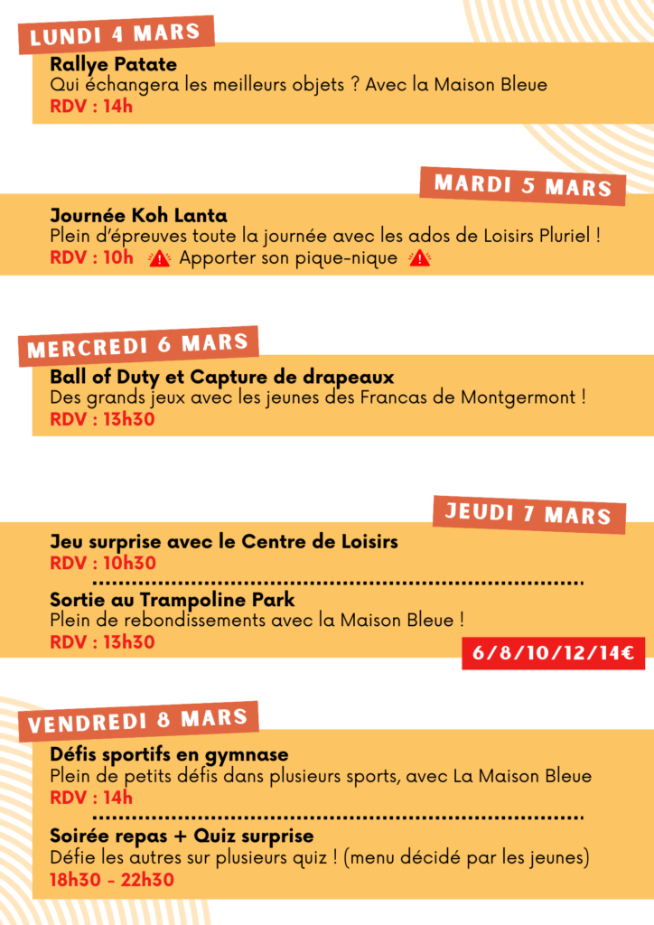 Découvrez la programmation pour les 11 – 17 ans pour les deux semaines de vacances d’hiver