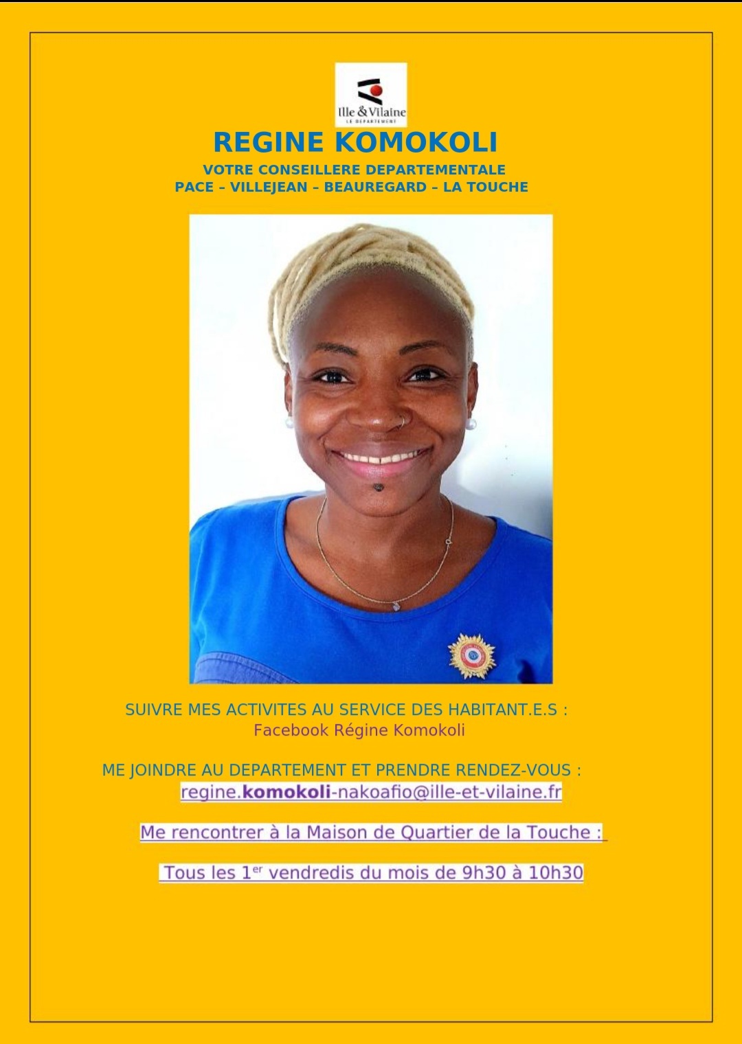 Régine Komokoli, votre conseillère départementale, vous accueille dans nos locaux tous les 1ers vendredis du mois, de 9h30 à 10h30 !