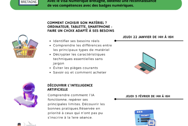 Renforcez vos connaissances (internet, smartphone, ordinateur…) et développez votre culture numérique (protection des données personnelles, les logiciels libres, l’écologie numérique, les low-tech…