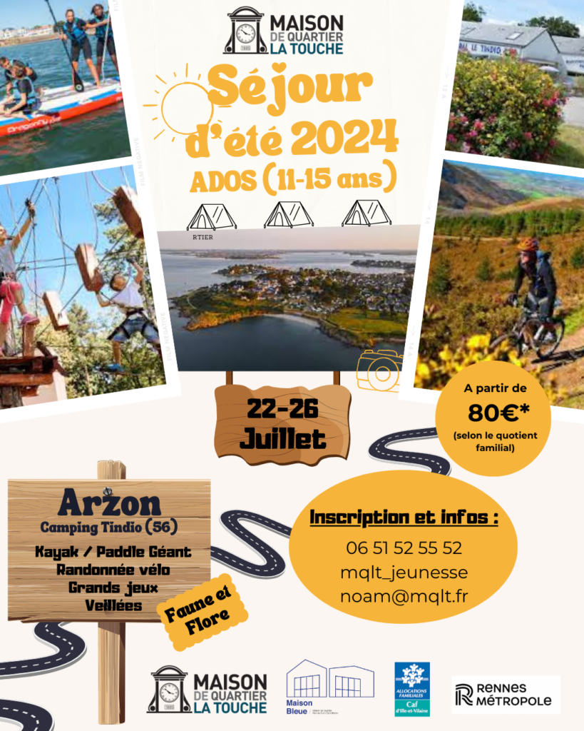 Arzon du 22 au 26 Juillet (Camping Tindio (56) Kayak / Paddle géant / Randonnées vélo / Grands jeux / veillées…) Inscriptions & infos noam@mqlt.fr / 06 51 52 55 52