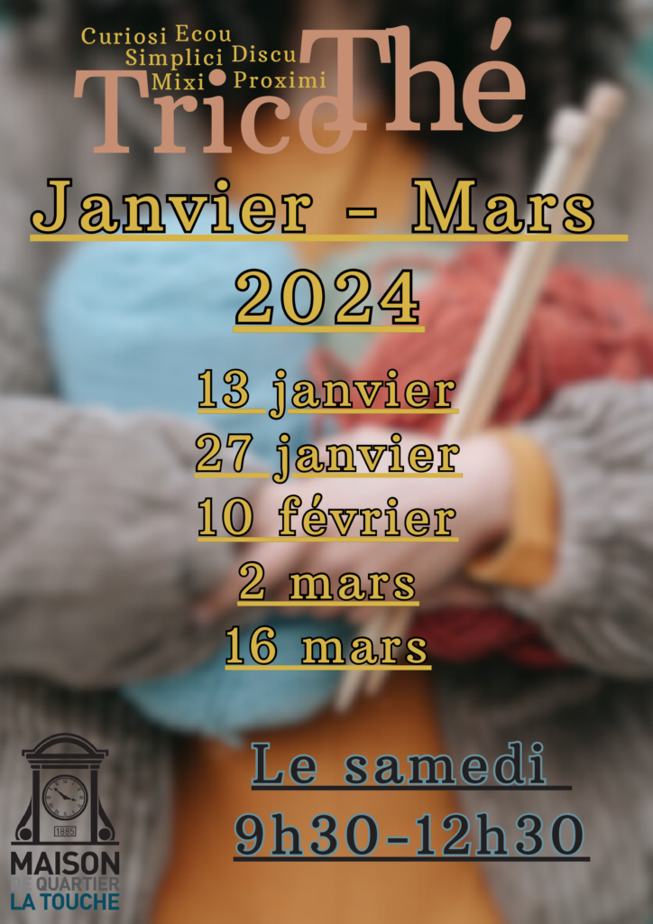 Curiosité, Écouté, Simplicité, Discuté, Mixité et Proximité. Les nouvelles dates sont arrivées ! Les samedi de 9h30 à 12h30 les 13 et 27 janvier, 27 et 10 février, 2 et 16 mars à la Maison de Quartier la Touche
